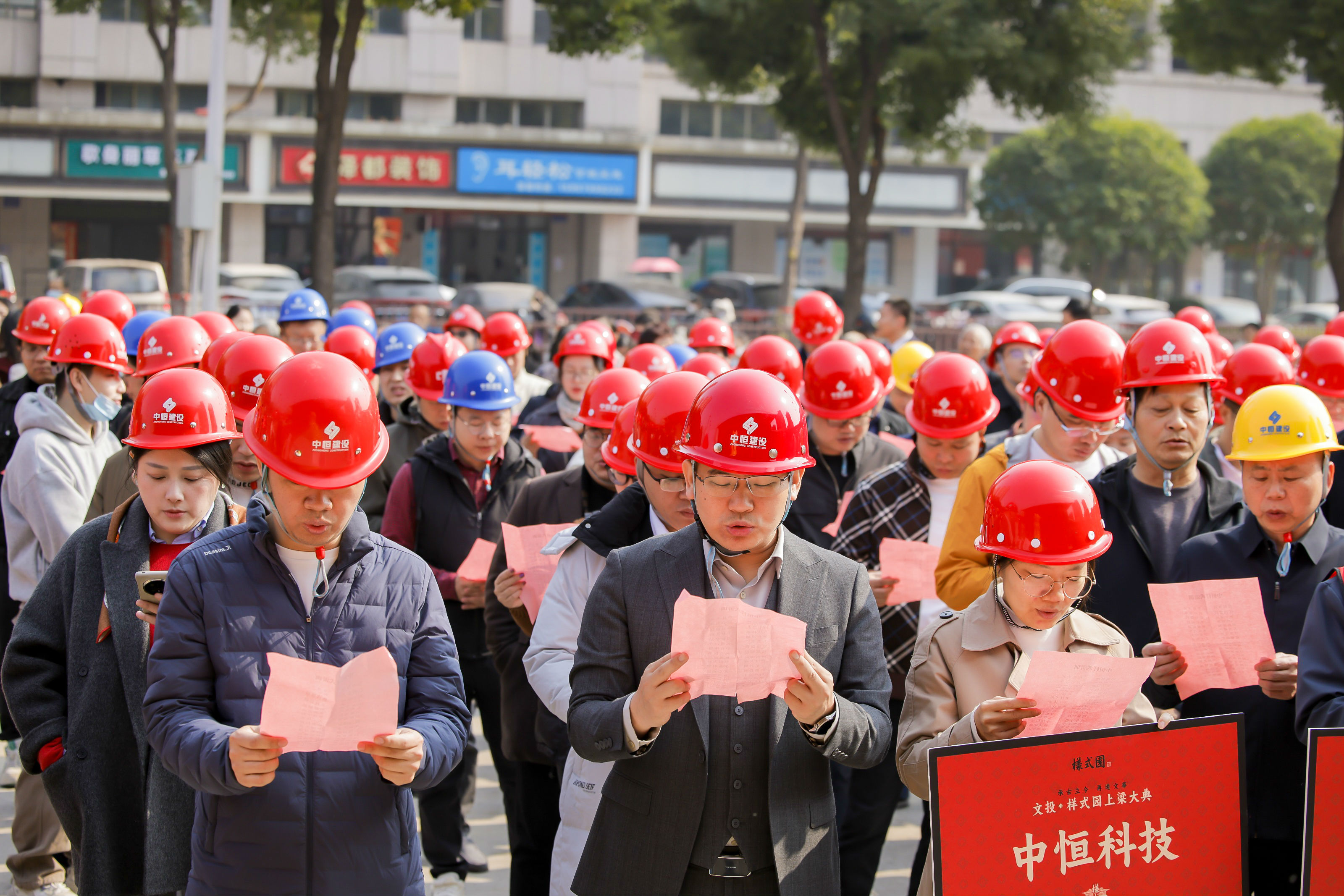 上梁礼成后,集团党委副书记、总裁聂恺领读《中恒样式雷训》,用样式雷“创新卓越,奉献精品;人类遗传,名震古今”的精神内核,为本次上梁大典画上圆满的句号!