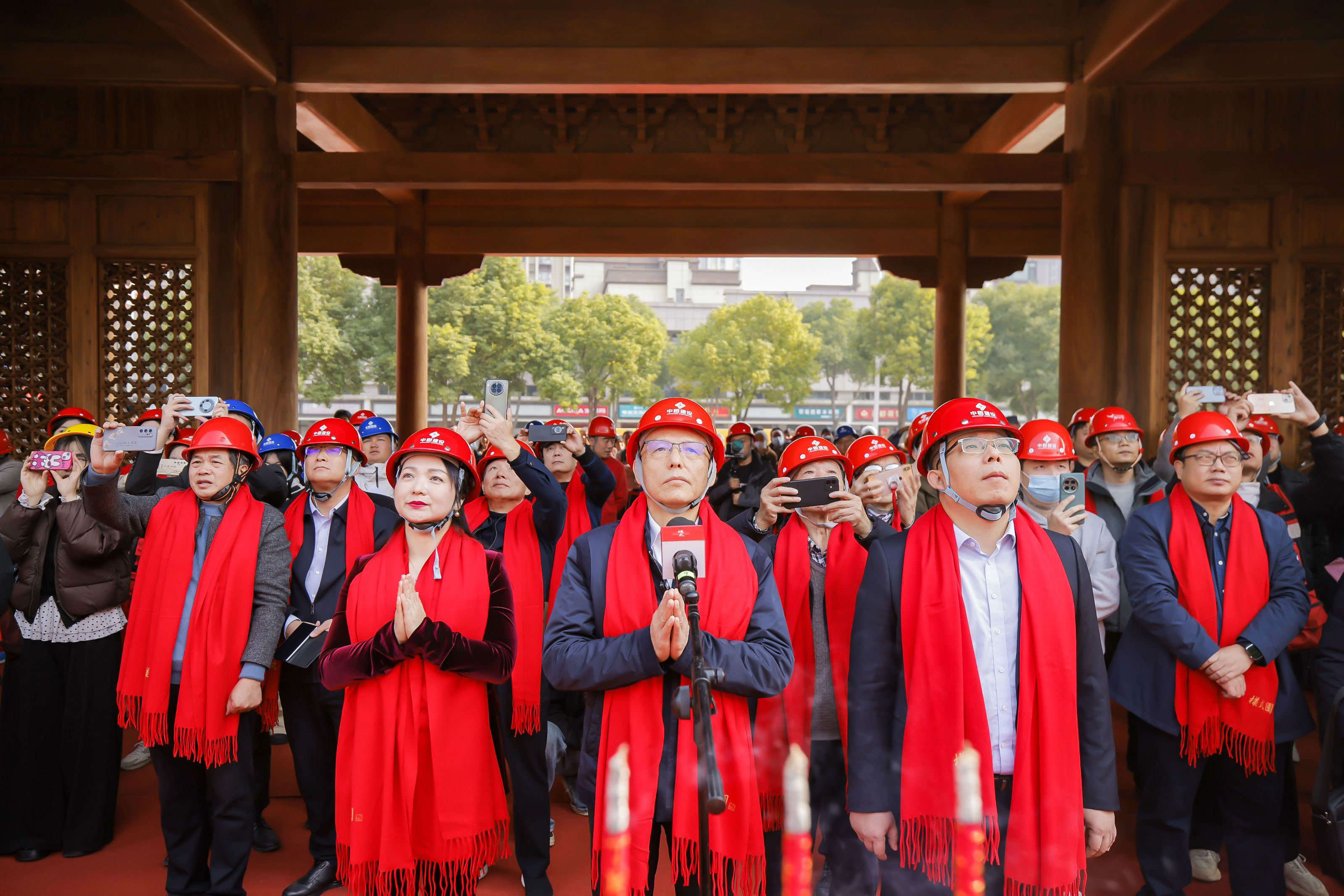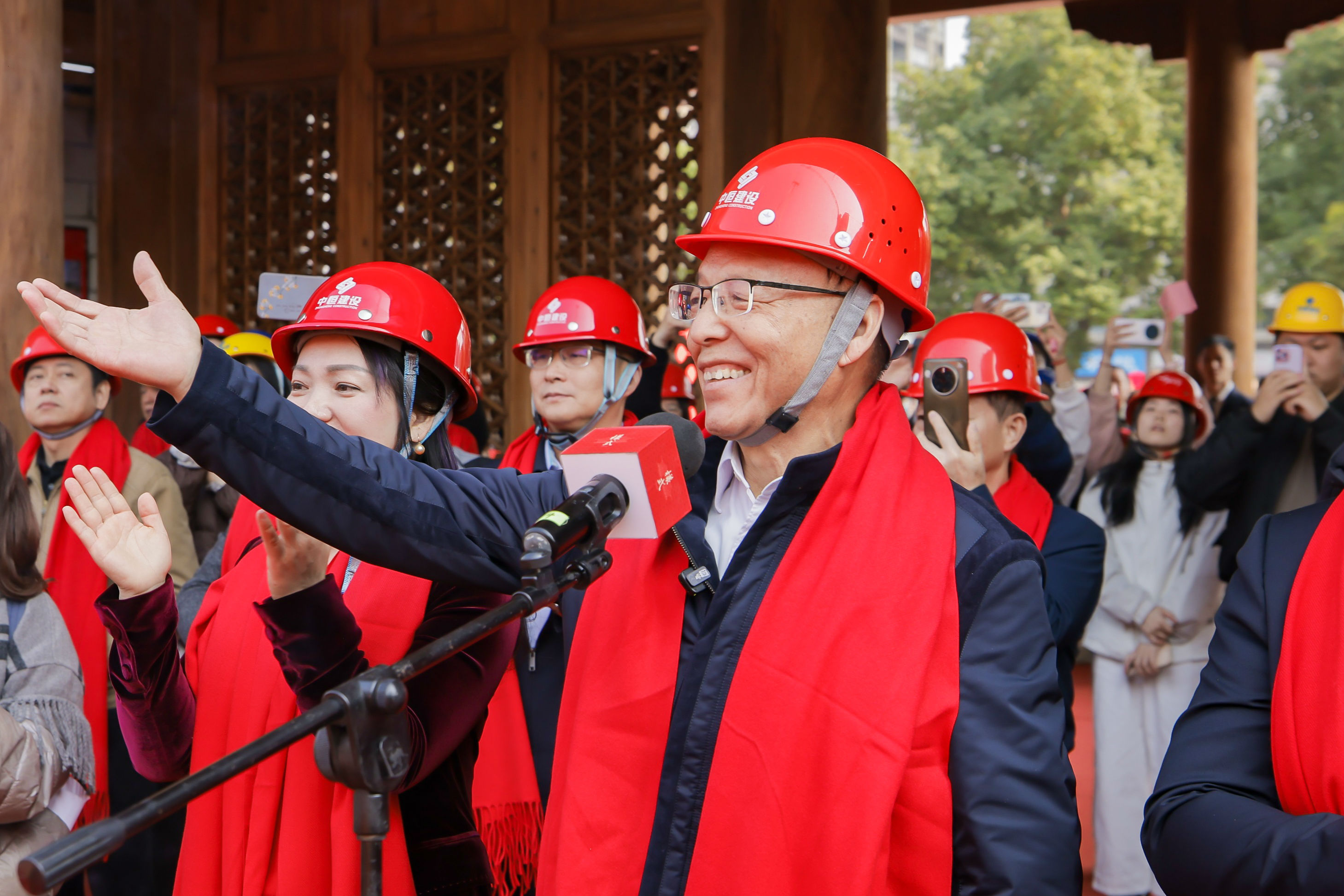 在庄重的唱诵与舞狮锣鼓声中,主礼嘉宾肃穆行礼,以清酒敬梁,以古礼祭梁。随着聂吉利董事长高声宣布“升梁,起!”,系着红绸的主梁在瑞狮欢腾、彩烟缭绕中平稳升顶,稳稳归位。抛梁环节则将吉祥的糖果与五谷撒向现场,寓意福泽共享,将活动气氛推向高潮。